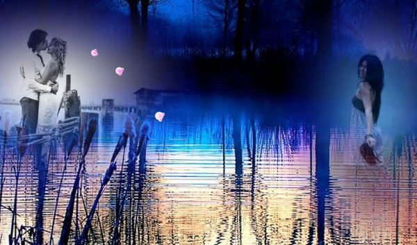 Степан на велосипеде быстро приехал к реке. А, Евгения пешком, да по бурьяну, чтобы никто не увидел, к реке прибежала, когда уже стемнело. Прибежала и стала песни петь. Голос у нее дивный. Чего в певицы не пошла не понятно. Видно мечтала за этим рыбаком по бурьяну бегать и комаров кормить своей кровью.